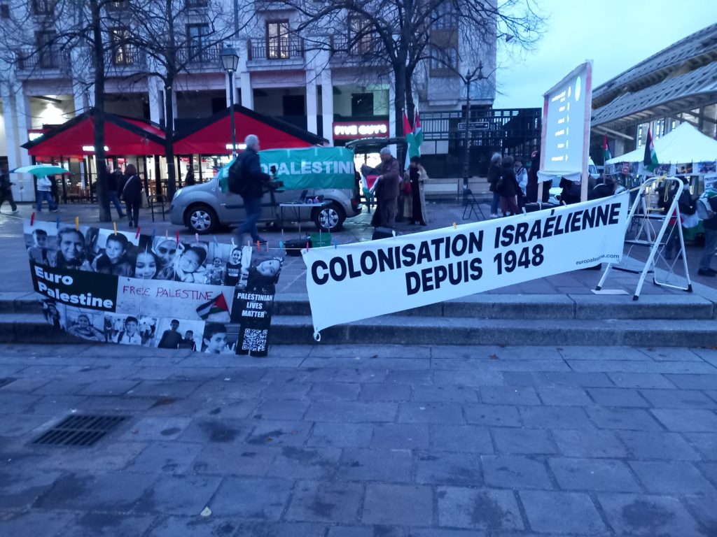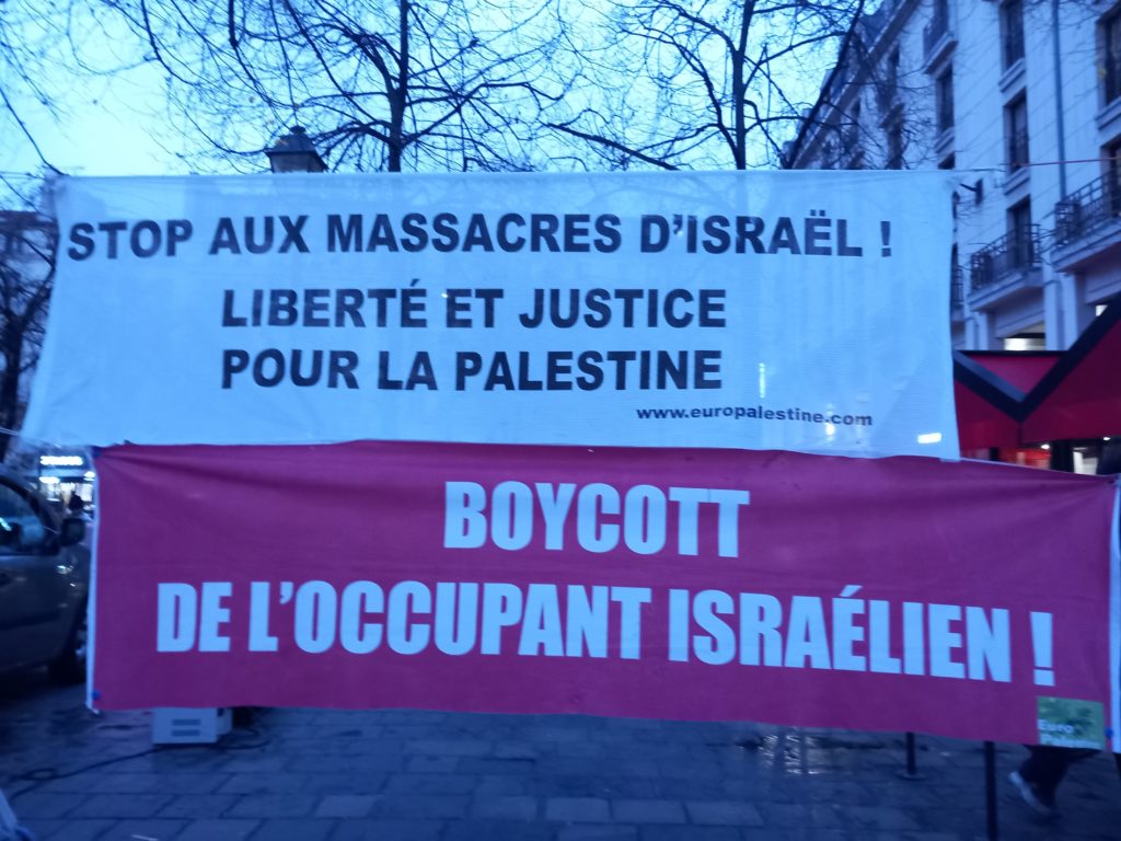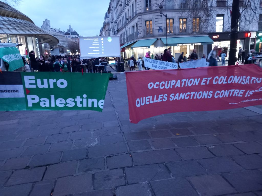 Nous avons organisé jeudi soir en plein centre de Paris une projection de vidéos montrant aux passants que, d’une part le génocide n’est pas terminé à Gaza, et que d’autre part les Palestiniens de Cisjordanie sont en butte, plus que jamais, aux pogroms, et à la dépossession exercées par les colons et les soldats israéliens.