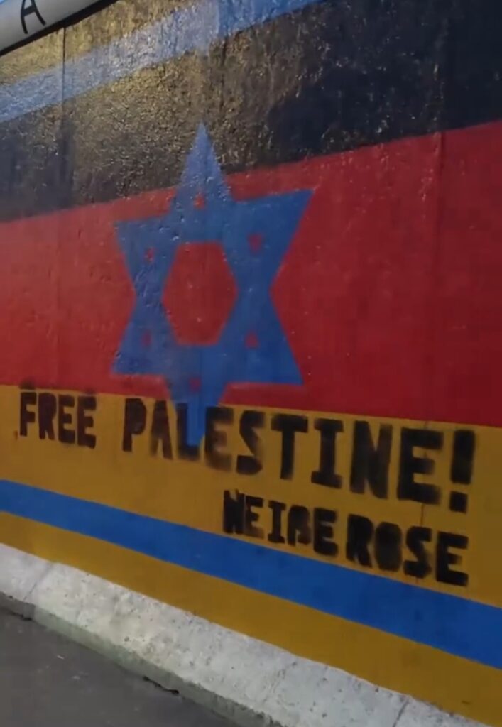 À l’occasion de la Journée de commémoration du génocide des juifs, des militants pacifistes ont laissé un message sur le mur de Berlin : « Aucune victime ne soutiendrait le sionisme aujourd’hui. »