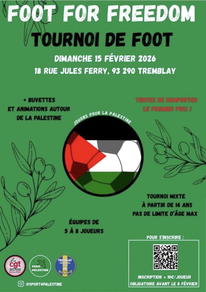 « Foot for freedom « , c’est dimanche 15 février à Tremblay ! On vous attend très nombreux-ses comme joueurs (foot salle) et comme spectateurs !