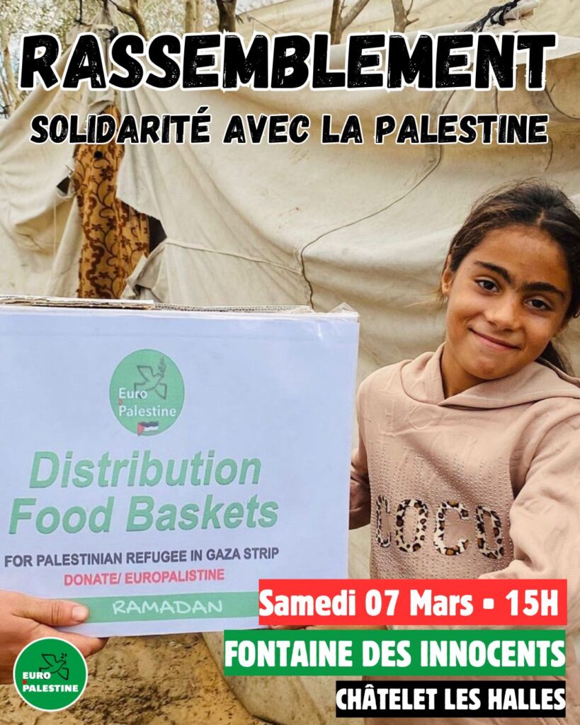 Toutes et tous à la Fontaine des Innocents ce samedi pour voir ensemble comment nous pouvons venir au secours de ce peuple colonisé, emprisonné, affamé, et lui apporter un peu de réconfort !
