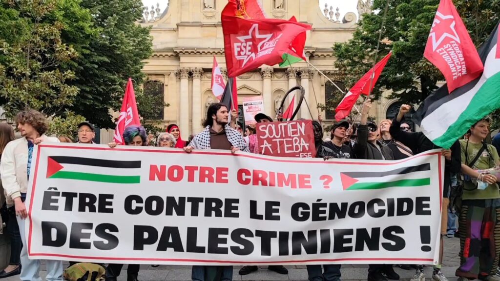Du monde pour soutenir Teba, lundi devant la Sorbonne. Elle est réprimée pour avoir pris position publiquement pour soutenir la Palestine.