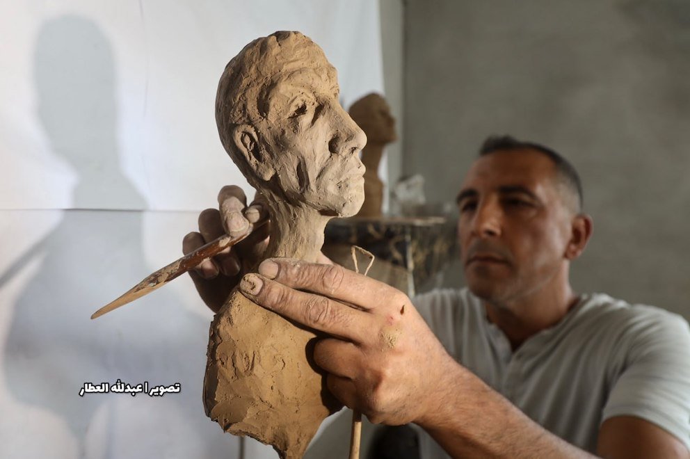Après avoir perdu sa maison à Rafah lors des bombardements israéliens, ce sculpteur, âgé de 50 ans, qui a consacré plus de 26 ans à perfectionner son art, récupère désormais de l’argile dans les décombres des maisons détruites pour créer des visages sculptés.