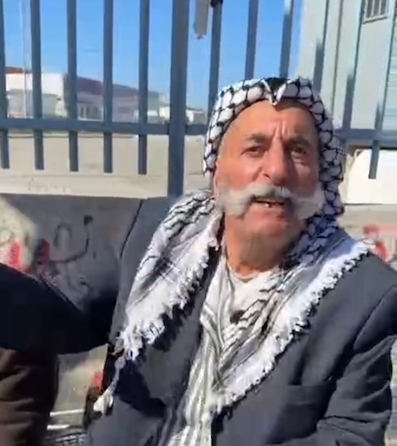 Un Palestinien âgé, au point de contrôle de Qalandiya, exprime son profond attachement à la Palestine, alors qu’il essaie d’entrer dans la mosquée Al-Aqsa pour accomplir la prière du vendredi.