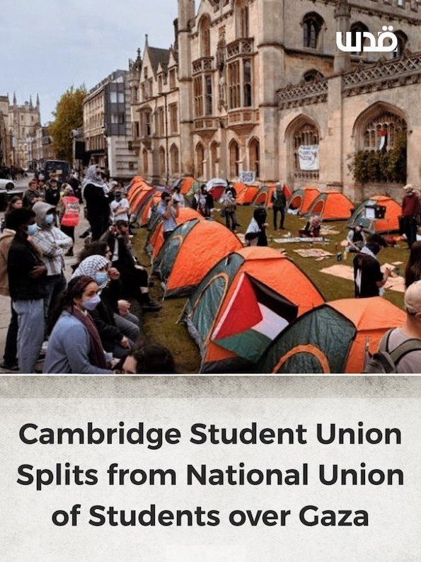 Des étudiants de Cambridge SU et de 52 autres campus ont exigé que la NUS prenne une position claire, notamment en condamnant l’occupation israélienne, en protégeant le droit des étudiants à manifester et à défendre les Palestiniens, et en reconnaissant le droit international relatif aux colonies et aux attaques contre les civils.