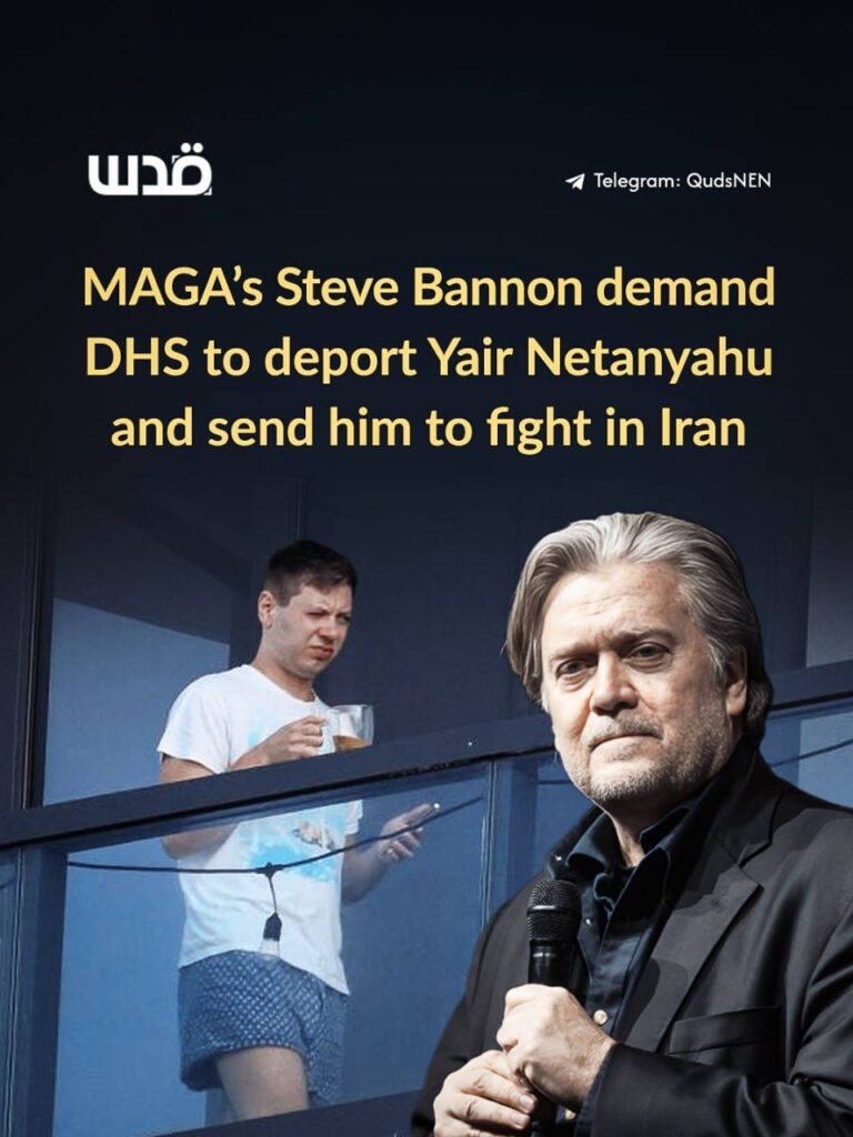 L’américain Steve Bannon, partisan du MAGA, a exhorté les autorités américaines à expulser Yair Netanyahou, le fils de Benjamin Netanyahu, et à l’envoyer combattre en Iran.
