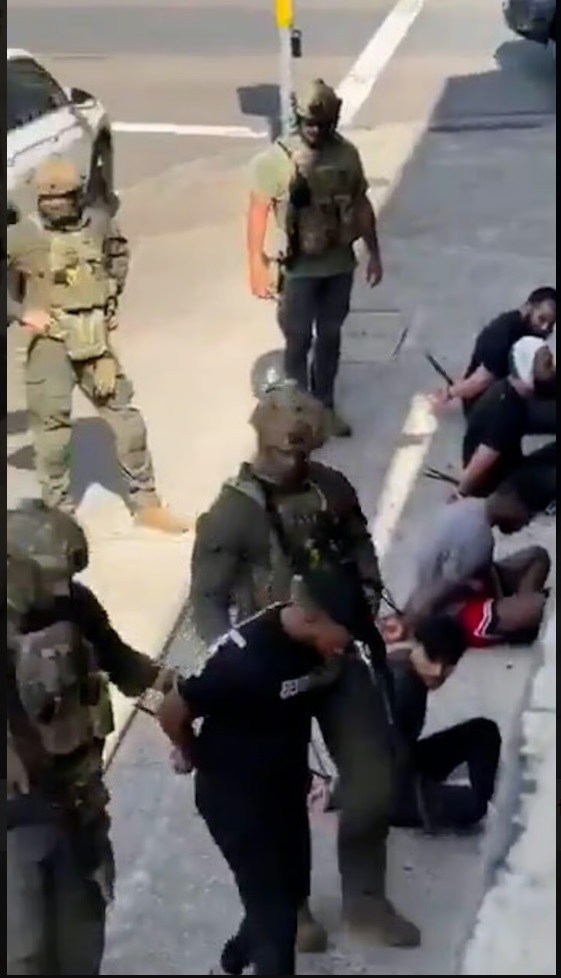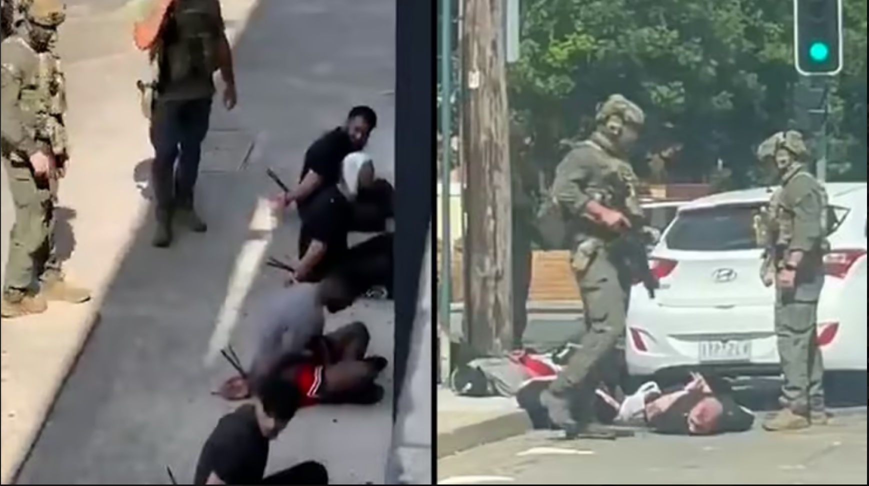 Des images filmées par des témoins montrent des policiers armés, portant fusils, casques et gilets pare-balles, menottant plusieurs suspects extraits d’un véhicule – apparemment après que ces derniers aient percuté une Hyundai blanche avec un Land Cruiser de la police. On voit ensuite les suspects ligotés au sol. L’arrestation a eu lieu près d’une école et d’un centre médical, et les personnes présentes à l’intérieur et dans les commerces voisins n’auraient pas été autorisées à quitter les lieux pendant l’intervention.