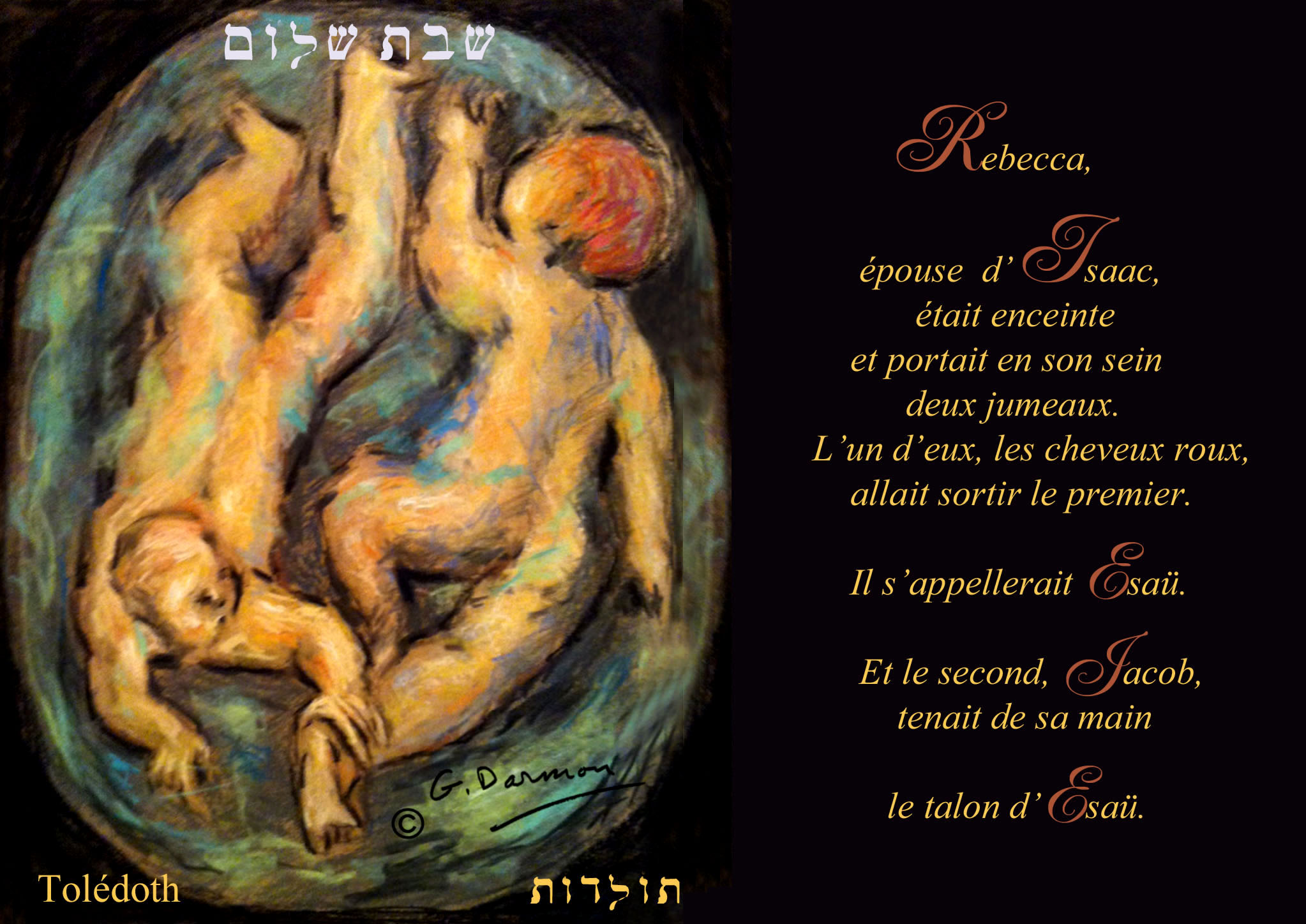 Tes fils se heurtaient en son sein… Elle alla consulter HA’CHEM. HA’CHEM lui dit : Deux nations sont dans ton ventre… Verset 25: 22–23