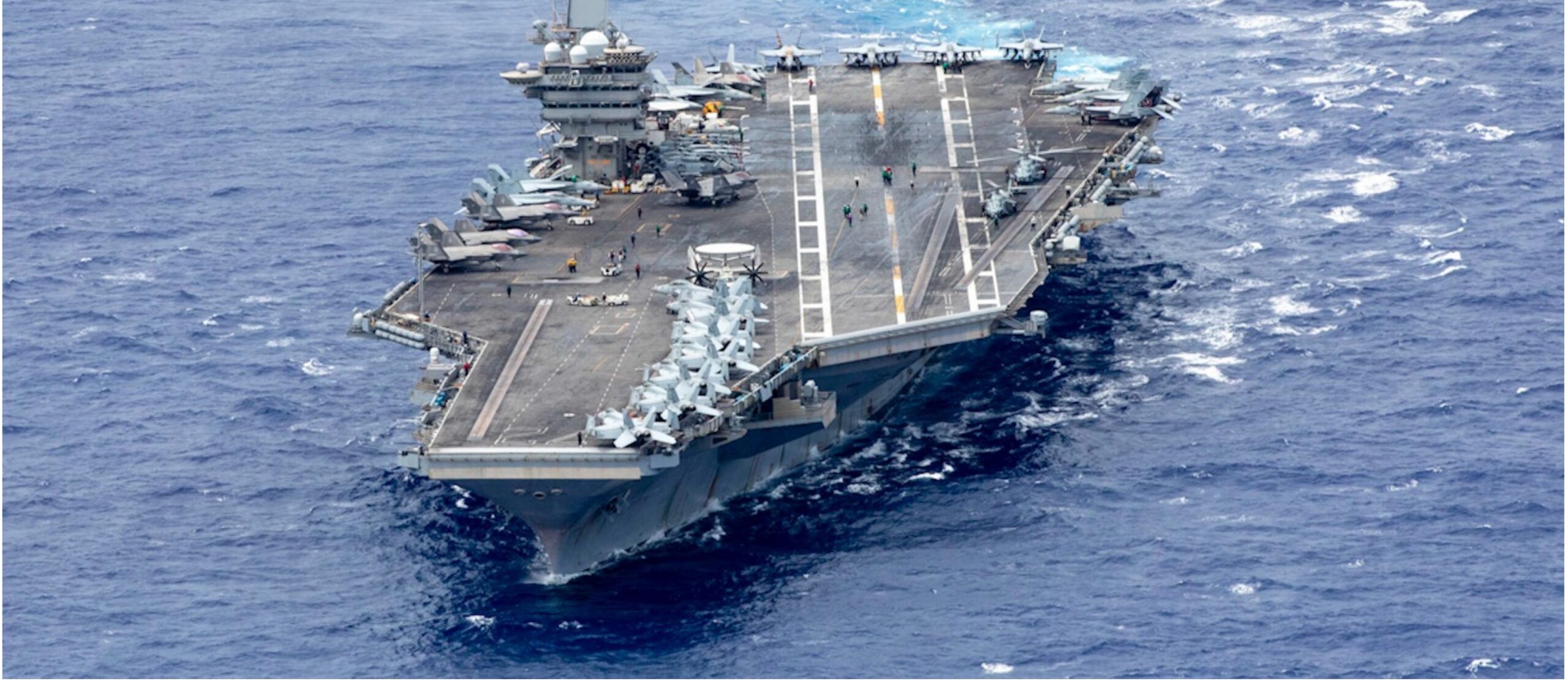 Le porte-avions est accompagné de trois destroyers lance-missiles de classe Arleigh Burke : l’USS Spruance, l’USS Michael Murphy et l’USS Frank E. Petersen Jr, selon Defense Security Asia .