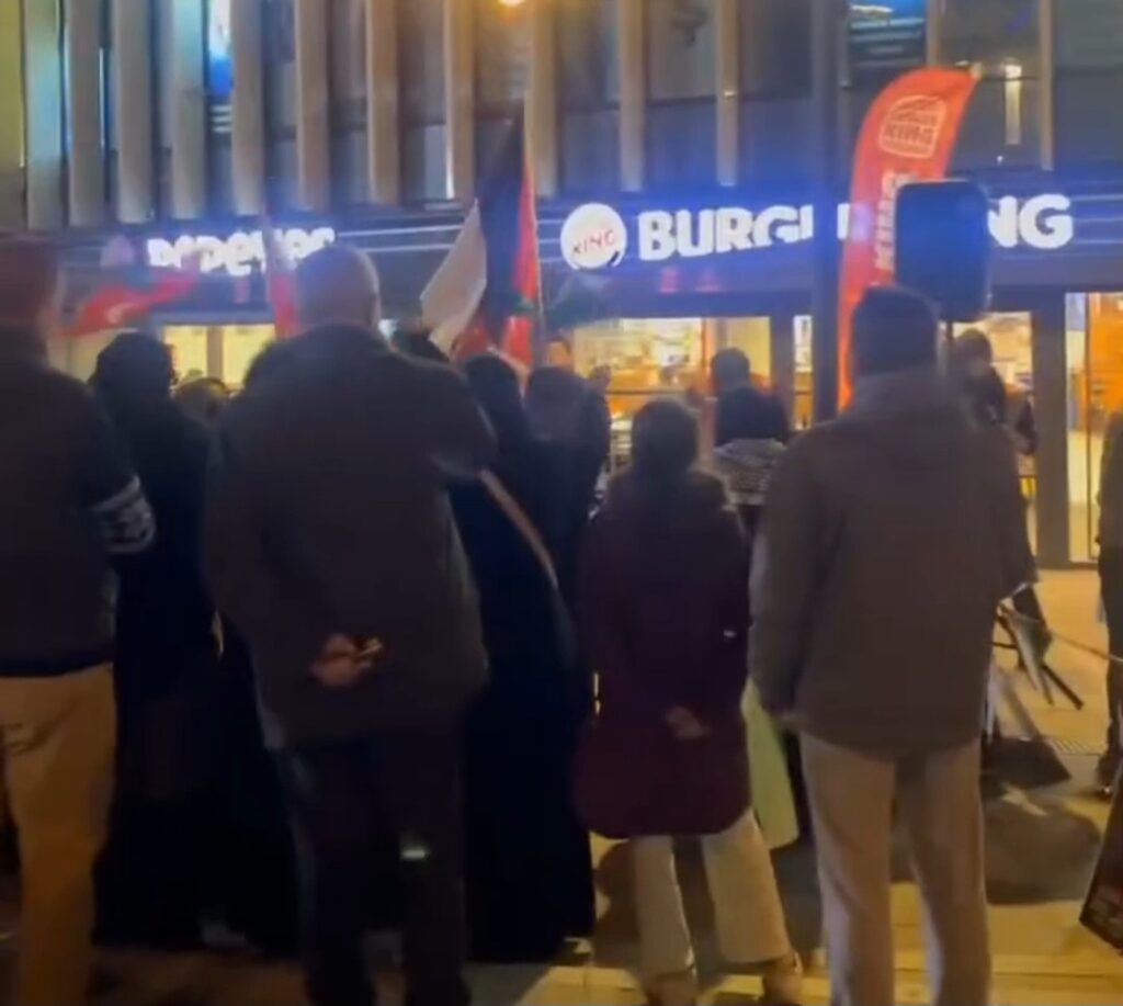 Rassemblement en Turquie, devant un restaurant Burger King pour protester contre le soutien de l’entreprise à Israël.