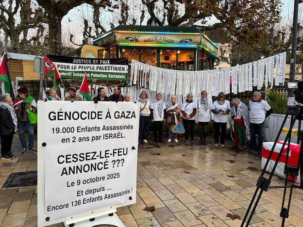 Ceci a suscité l’émotion chez beaucoup d’habitants de Sarlat, mais aussi l’incrédulité chez certains, pas informés par les médias grand public, et croyant que tout était réglé à Gaza depuis l’annonce du cessez-le-feu.