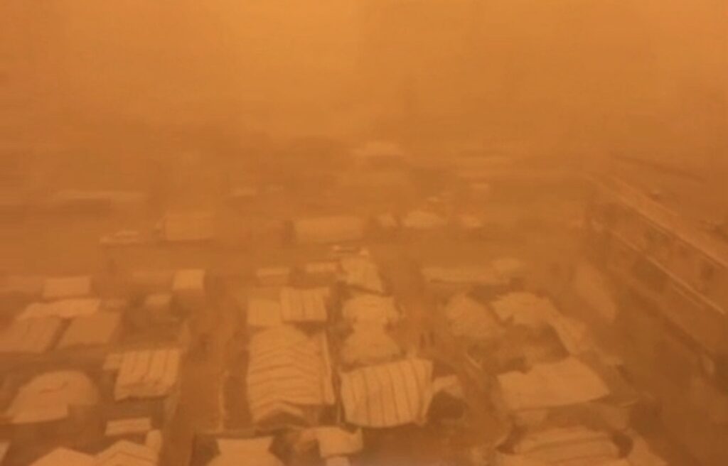 Dans la bande de Gaza, une tempête de sable a balayé les camps de tentes où des familles déplacées tentaient de survivre dans des abris de fortune précaires. De nombreuses tentes ont été déchirées, laissant les familles à la merci des intempéries dans les rues, sans nulle part où aller.