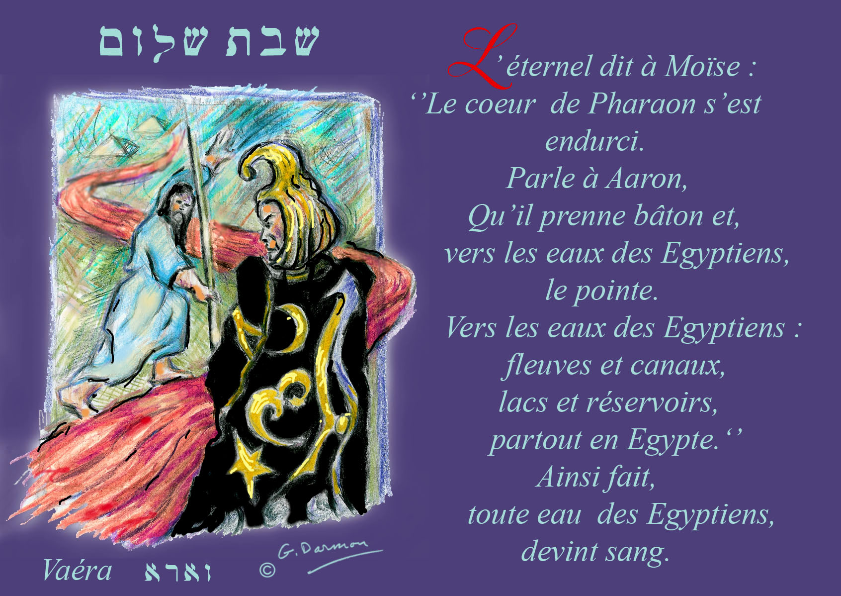 En attendant, la paracha « Vaéra », au début de laquelle est annoncée la commutation du nom de Dieu d’El Chaday au Tétragramme, ce qui constitue un incommensurable changement d’échelle, relatera pas moins de sept prodiges introduits par la transformation en serpent du bâton de Moïse  (Ex, 7, 9): le sang, les grenouilles, les poux, les bêtes fauves, la peste, les ulcères, la grêle.