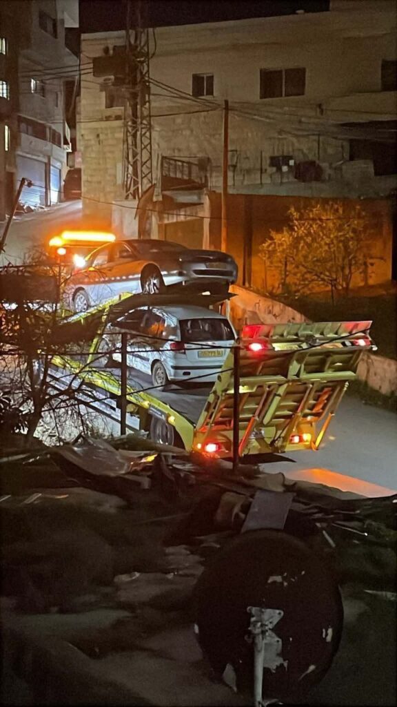 Les forces d’occupation saisissent sans se gêner plusieurs véhicules palestiniens lors du raid en cours sur le village d’Al-Lubban Al-Sharqiya, au sud de Naplouse.